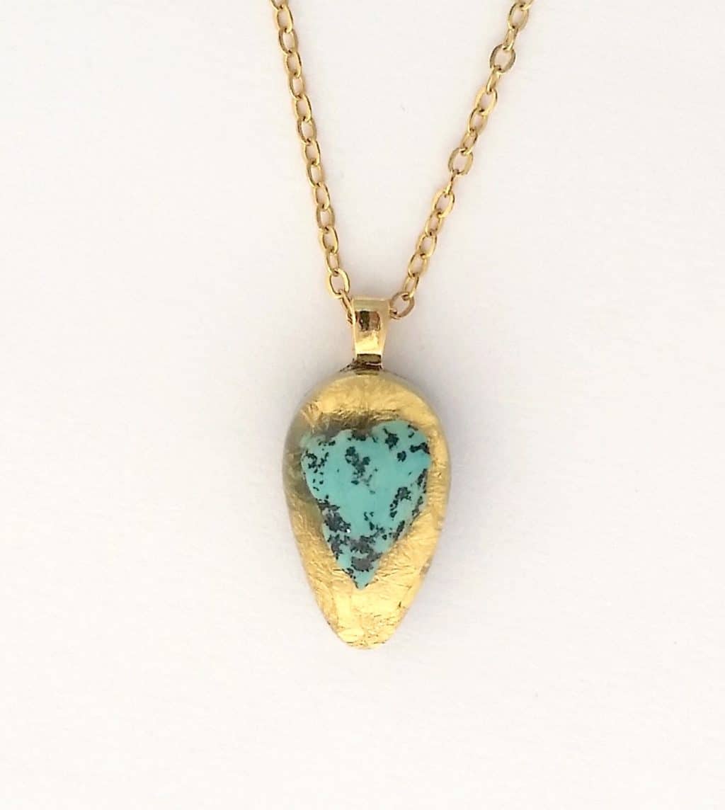 חומר: אורגונייט עם עלה זהב ואבן טורקיז ושרשרת גולדפילד